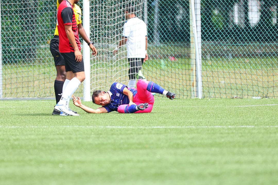 A quick counterattack moments later caused a dangerous collision between Khairi (KLCCUH) and an EXPRO striker both going for a 50-50 ball in the air. The situation turned tense as Khairi was left unconscious. Medical staff rushed in, and he was stretchered out for further treatment. Thankfully, he was later reported stable. Following the incident, EXPRO were awarded a penalty, which they converted to make it 2-0.