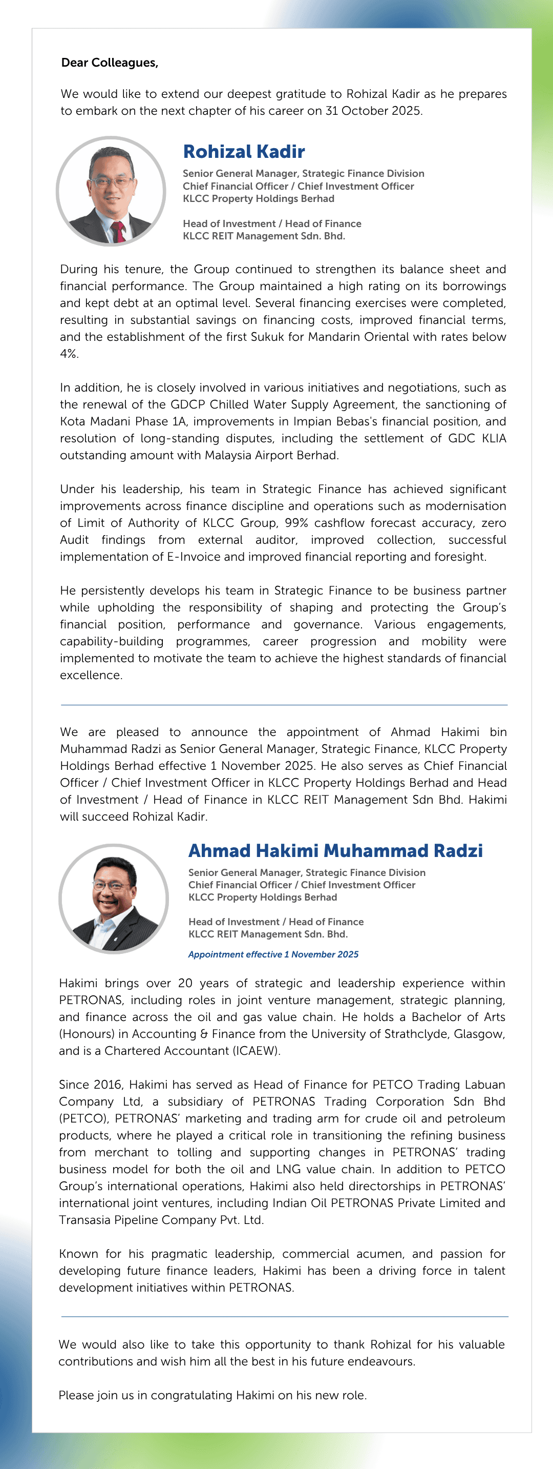 Senior Leadership Appointment – Ahmad Hakimi Muhammad Radzi